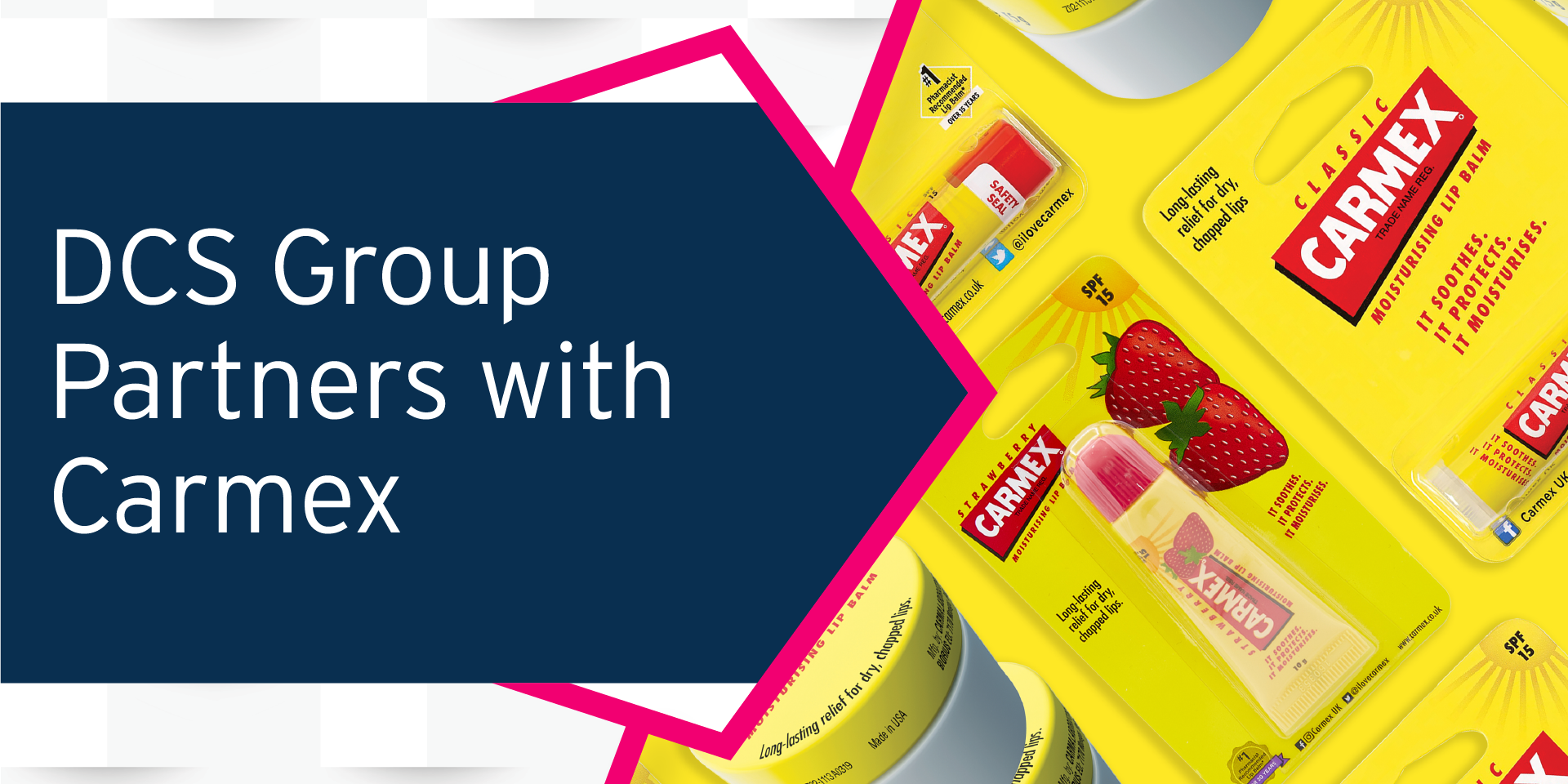 DCS Group is delighted to partner with Grafton International and Carmex UK to deliver sales growth across our core channels, Wholesale & Convenience, Discount, Retail and Pharmacy. Through collaboration, DCS are able to offer Cash & Carry friendly packaging, clip strips and exciting limited editions to suit all types of retailers.