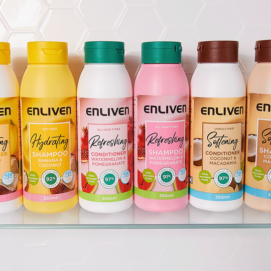 With the cost-of-living crisis biting hard for many households, it’s a good idea to include an entry-level brand in the range as well. The Enliven Fruits range is a great option – it’s a premium, good quality product with an affordable price point of around £1.49 RRP*, and there’s a hair mask available at £2.49 RRP* to go with the shampoo and conditioner, to add a bit of an extra treat.